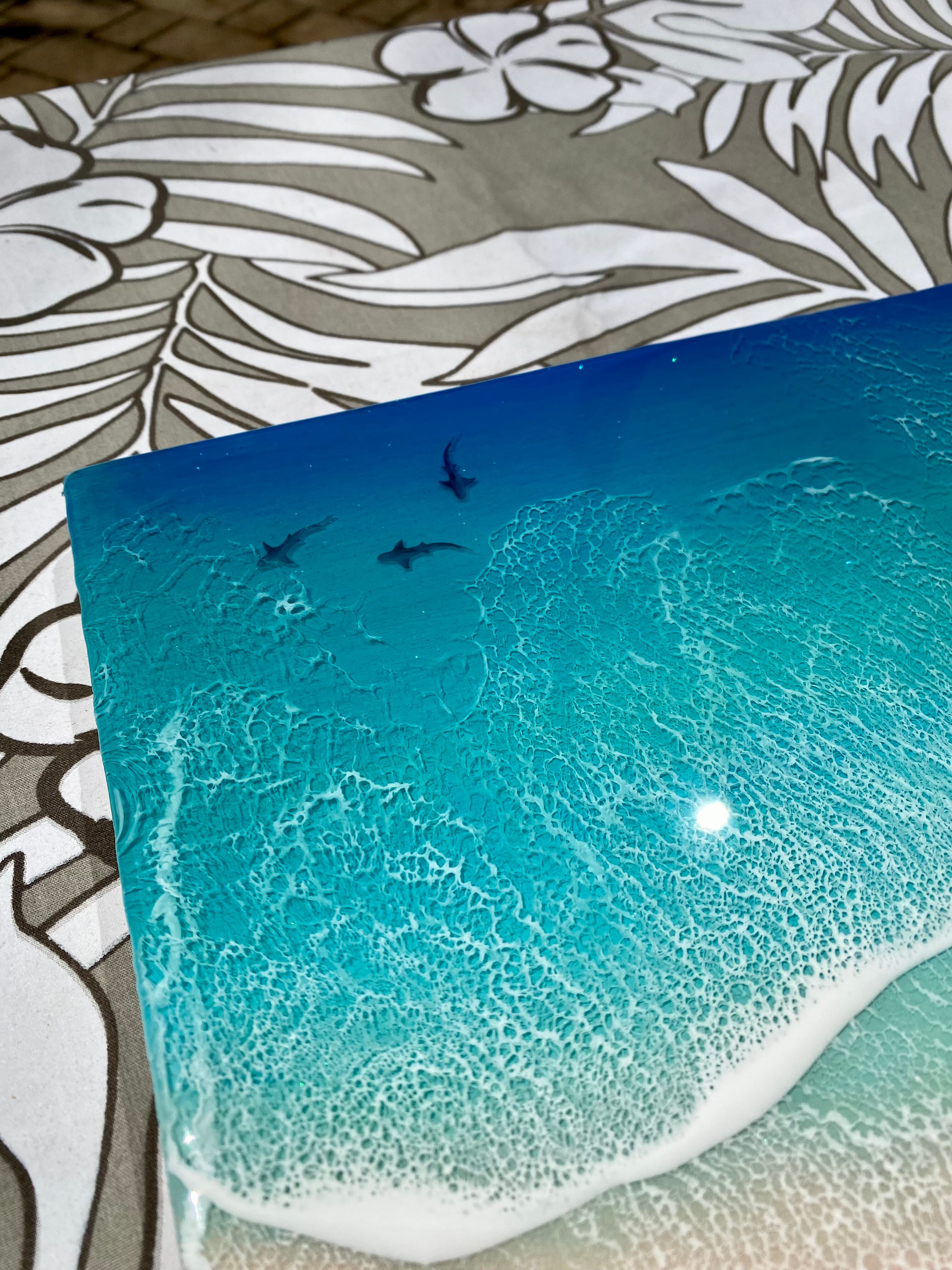オーシャンビューにインスピレーションを得た、美しいレジンアートの2連パネル。